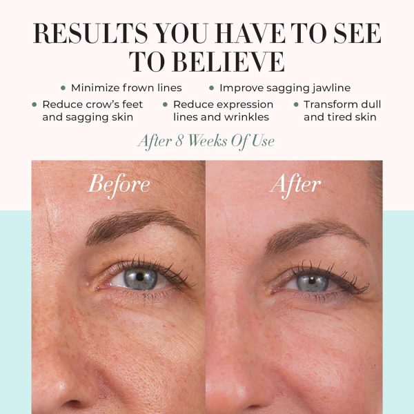 The Results: Immediately and after 8-weeks of continued use, improve sagging jawline, reduce crow’s feet, minimize frown lines, and overall skin is left feeling and looking radiant and more youthful. This technology is similar to those used, and once only available by professionals in med-spas and skin centers.